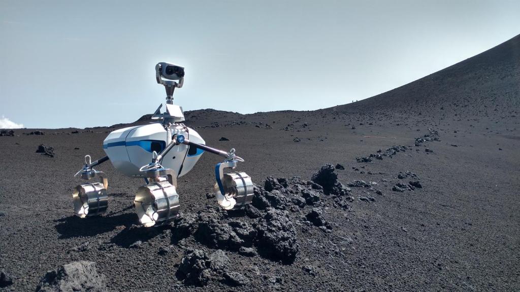 Sebuah robot menjelajah lingkungan berbatu, dengan hembusan angin mirip seperti permukaan sebuah planet yang jauh di luar angkasa dalam fiksi ilmiah. Namun lokasi ini tidak terletak di angkasa luar, ini adalah lereng dari gunug api paling aktif di Eropa.
